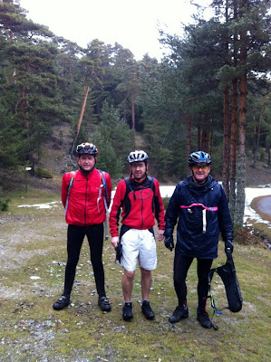 Toda la subida lloviendo y entre 4 y 2 grados. Sin prisa pero sin pausa nos plantamos en la Fte. en un plisplás. Piscolabis, camiseta y guantes secos y p'abajo que hace frío y los de los chorizos (los Juaquines, los dos) tienen prisa.