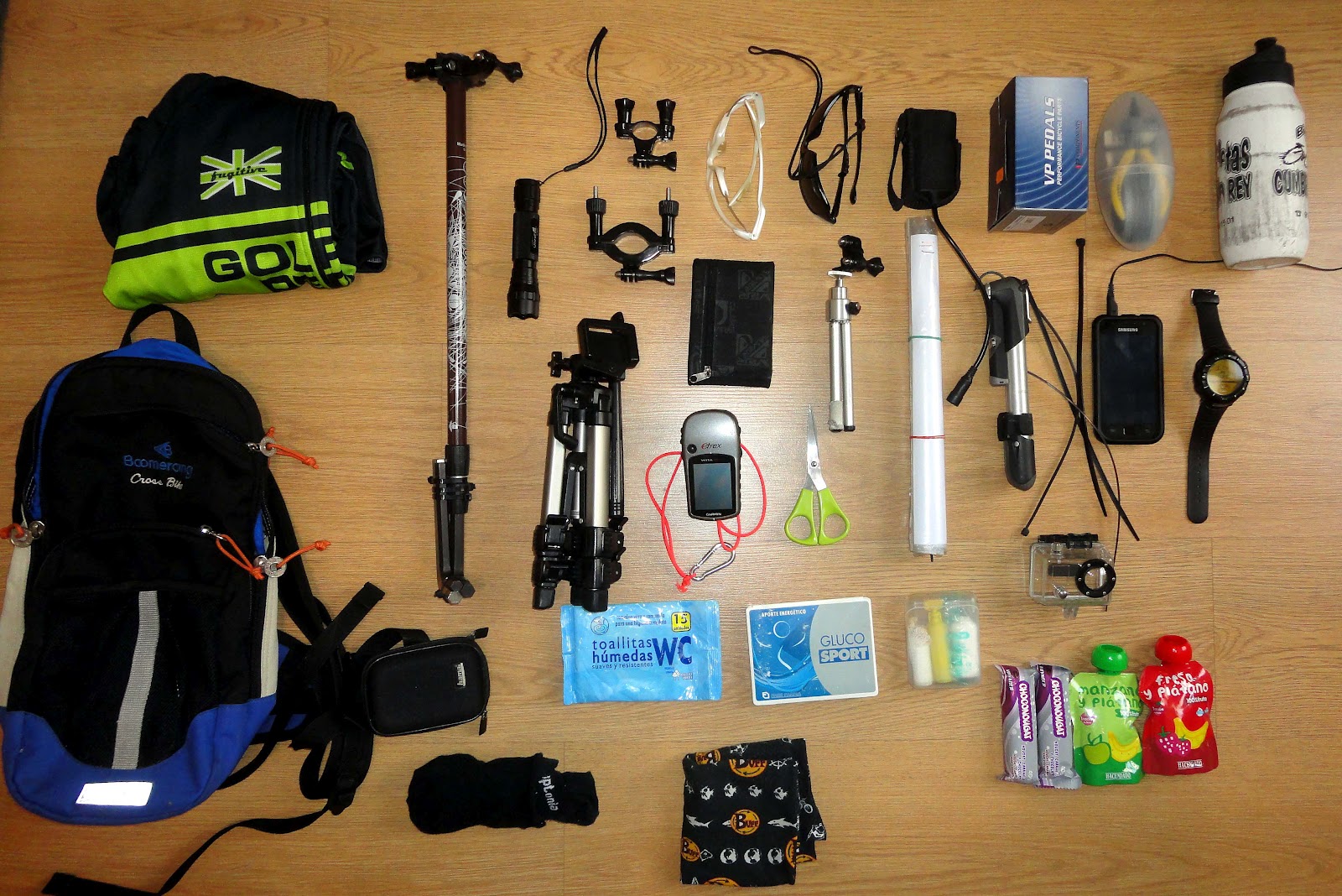 Peso, mucho peso. Esta foto es para que veáis todo lo que llevaba ayer en la mochila, salvo el reloj y el bote de agua. Mario, al final no te dí la cámara!!