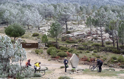Total, que después de un rato nos decidimos a tomar el sendero que nos llevaría hasta el Pozo de la Nieve, no sin haberlo dudado un poco, pues el viento que hacía amenazaba con tirarnos de las bicis; y no es broma.