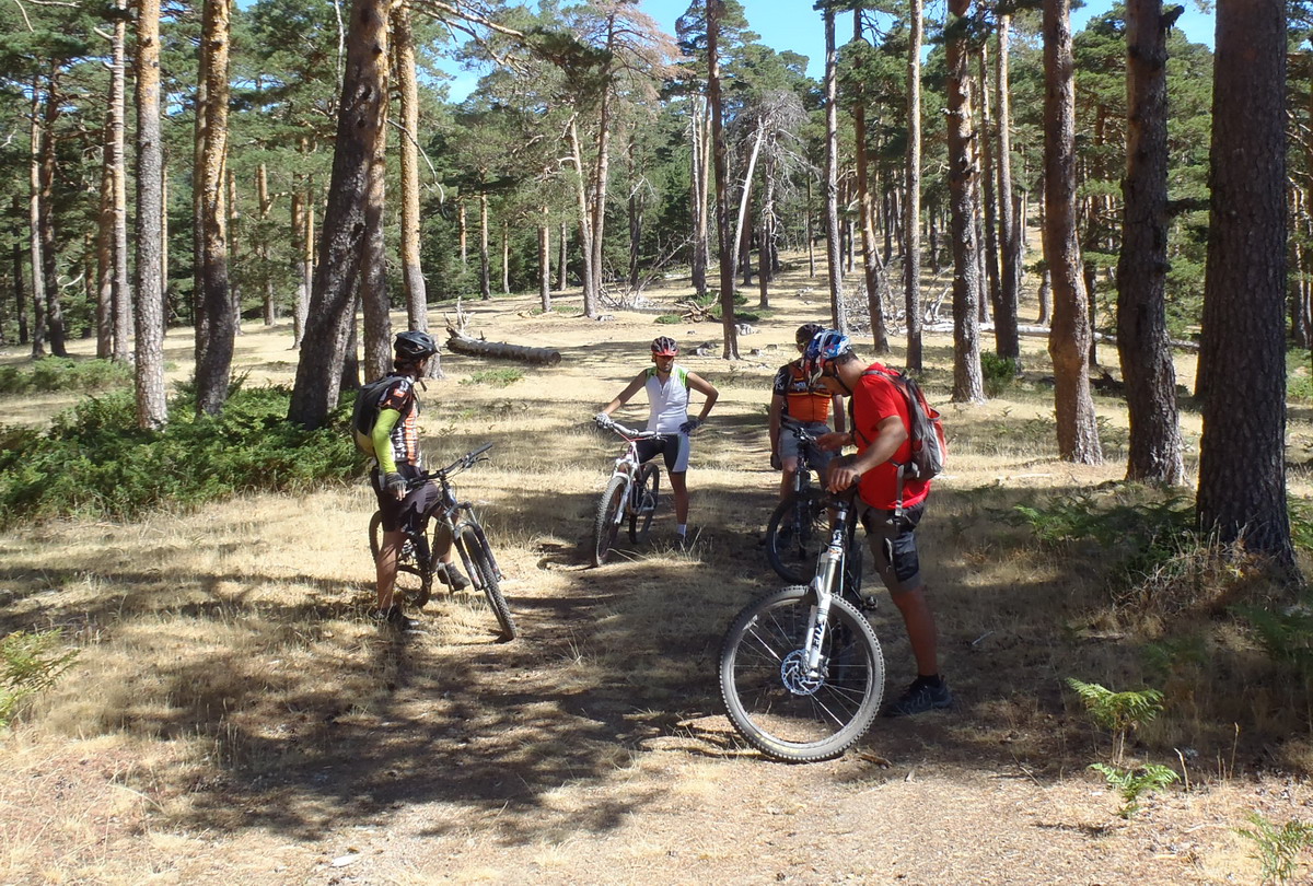 Y un pequeño gráfico en el que destaco la bajada de la divisoria de los Berciales, inicio de la nunca bien ponderada vereda Valbuena, 300 metros de descennso en un kilómetro y medio. Sería bueno que el Excmo. Ayto. de Valsaín pasara un camión cisterna y regase un poco la susodicha senda, que Ete no sitúa bien el centro de gravedad del conjunto bici-Ete y bajaba culeando cosa mala. Eso, o una tija-pija. Y lo peor es que yo iba el último, comiéndome las nubecillas que levantaban estos gañanes.