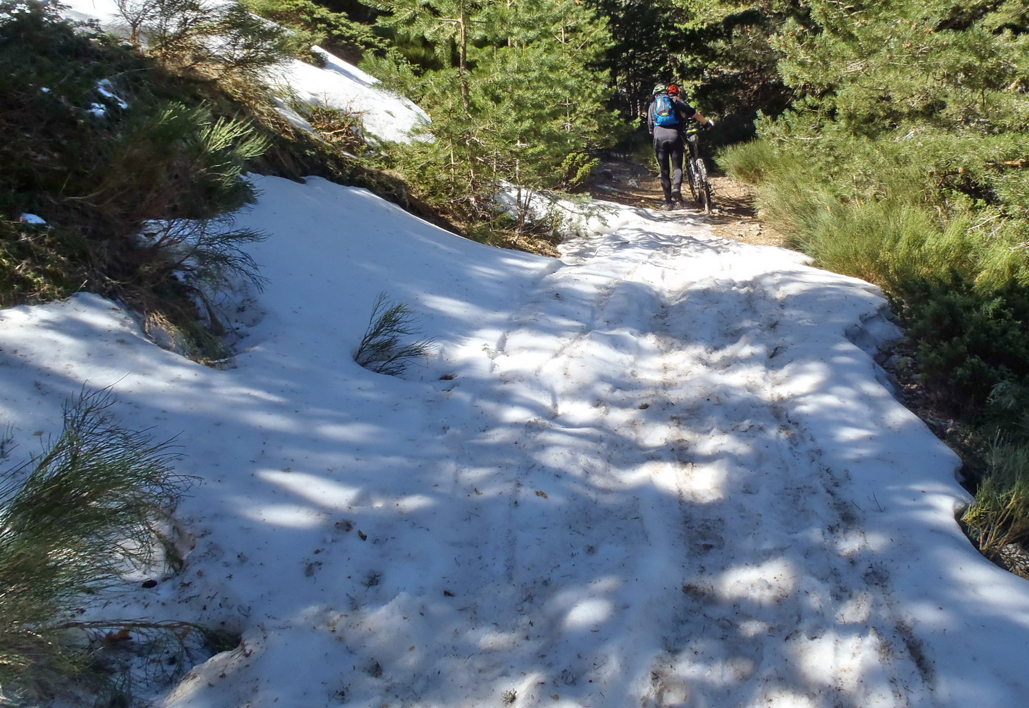 Y aquí, a punto de iniciar la extrema pendiente de la salida de los Abuelos hacia el Arroyo de los Regajos. Culo pa'trás y a disfrutar.