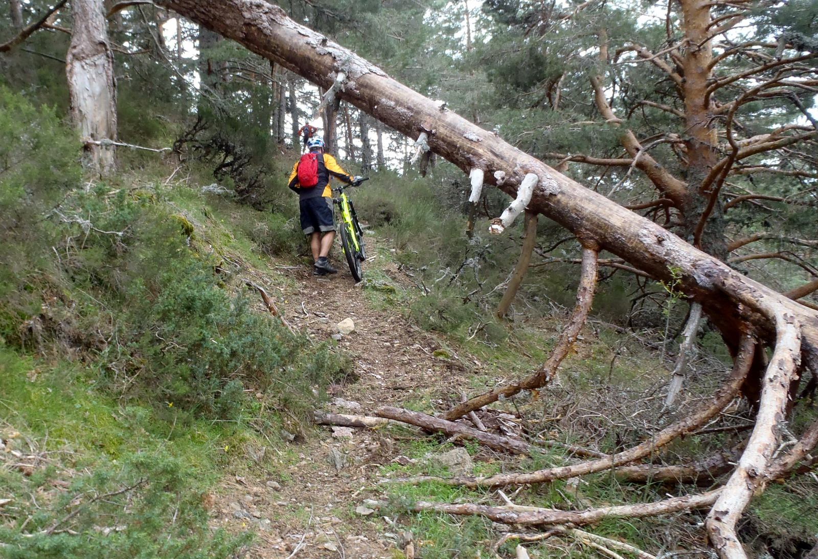 Después de los troncos apilados que se ven en la foto ya podemos pedalear bien. Bueno, relativamente bien, porque la pista esta ya sabéis cómo es.